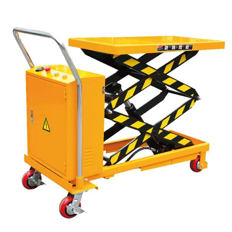 La table élévatrice à chariot à ciseaux semi-électrique est actionnée par des piles à courant continu et déplacée par traction ou poussée manuelle.La table d'ascenseur est placée sur des rouleaux de haute qualité conçus pour offrir des performances et une durabilité optimalesLes rouleaux sont verrouillables pour plus de sécurité, ce qui pourrait éviter des blessures répétitives dans les entrepôts lorsque le levage est nécessaire.