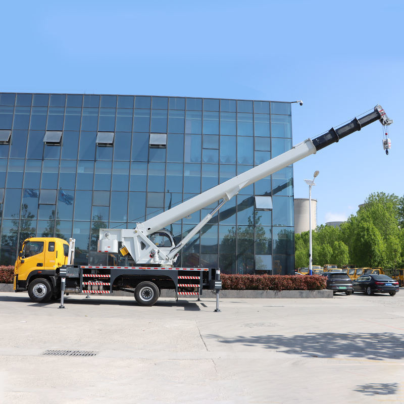 Une grue à flèche est généralement assemblée sur des camions cargo et utilise des systèmes de levage hydraulique et télescopique pour réaliser le levage, la rotation et le hissage des marchandises. Les grues montées sur camion sont largement utilisées pour le levage et le transport de matériaux d'infrastructure tels que la construction municipale, l'ingénierie minière du charbon et l'aménagement paysager.